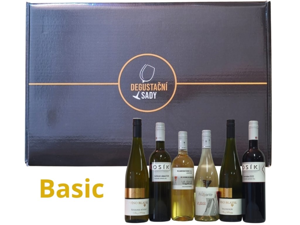 Degustační sada vín Basic obsahuje 6 lahví (0,75l) pečlivě vybraných moravských vín.
