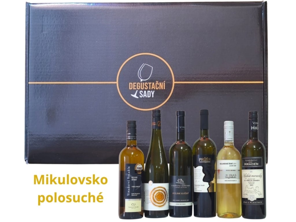 Degustační sada vín Mikulovsko polosuché obsahuje 6 lahví (0,75l) polosuchých přívlastkových vín z Mikulovské podoblasti.